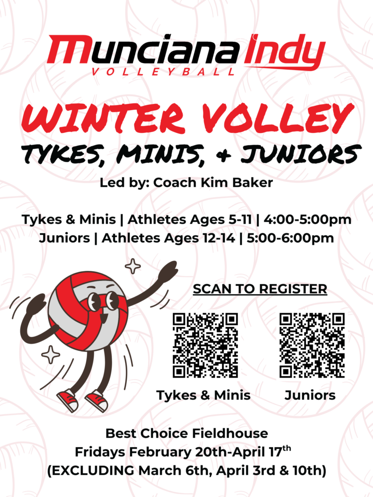 | Winter Volley Tykes & Minis | Boys & Girls Ages 5-11 | February 20th-April 17th (Fridays) *Excluding 3/6,4/3, & 4/10* | 4:00-5:00pm | Register Here! |